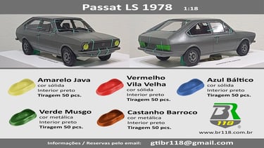 Entre novembro de 2025 a fevereiro de 2026 a BR118 vai fabricar um lote exclusivo para a nova Série do Passat LS 1978 com 5 cores disponíveis.